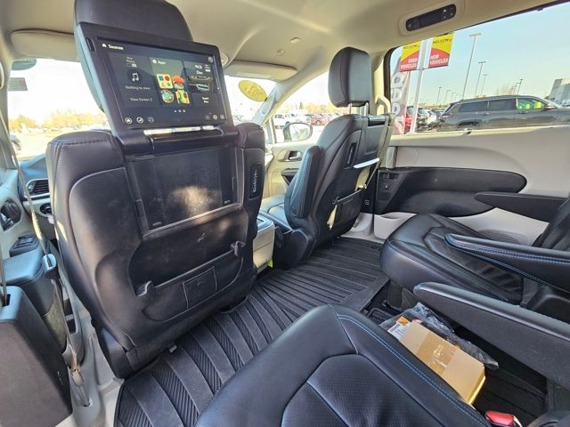 ⢠Stay entertained with the Uconnect Theater Family Group, featuring a Blu-Ray/DVD player, 3-channel wireless headphones, and seatback video screens.