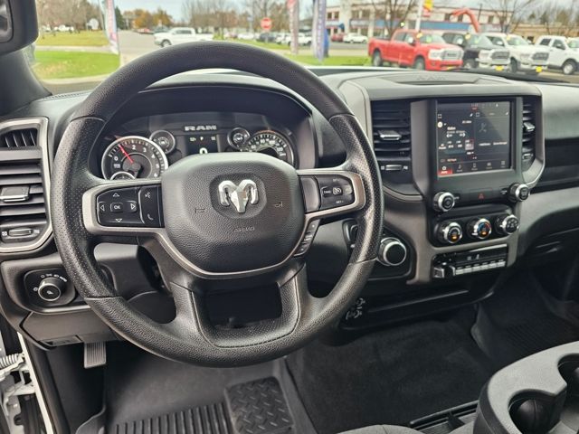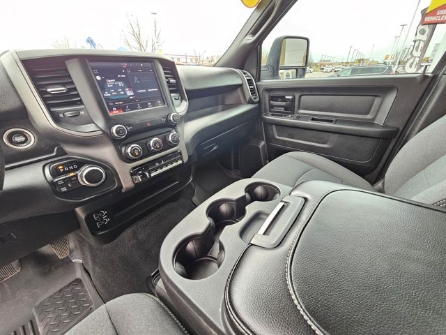 Inside, the spacious cabin offers a comfortable 40/20/40 split bench seat with cloth upholstery, providing ample room for you and your crew. The Uconnect 5 infotainment system with an 8.4-inch display keeps you connected and entertained, while the power-heated and folding telescope mirrors ensure optimal visibility.